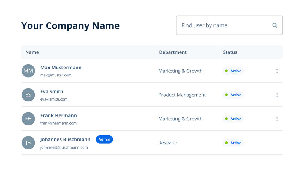 Mit der Suchfunktion oberhalb der Liste können Sie Nutzer schnell per Name oder E-Mail-Adresse finden.