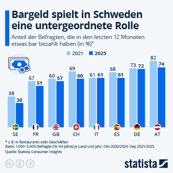 Die Deutschen lieben ihr Bargeld – und die zugehörigen Automaten. Das zeigt eine aktuelle Forsa-Umfrage im Auftrag des Marktwächter Finanzen, einem Angebot der Verbraucherzentralen. So heben 38 Prozent der Befragten mindestens einmal pro Woche Geld am Automaten ab. 27 Prozent holen sich alle zwei Wochen frisches Geld, wie die Grafik von Statista zeigt. Die durchschnittliche Summe beträgt dabei 248 Euro. Die Auszahlung an Tankstellen oder Supermarktkassen sorgt bisher allerdings für keine große Begeisterung: 78 Prozent geben an, sich dort nie Bargeld auszahlen zu lassen.