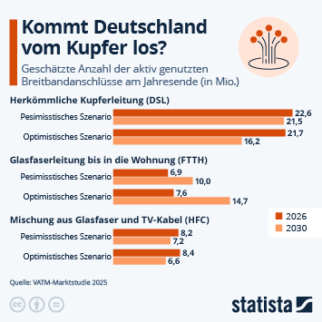 In Deutschland gibt es etwas, dass in den Medien vereinfachend als Recht auf schnelles Internet bezeichnet wird. Dabei geht es im Kern darum das Stadt-Land-Gefälle bei der Breitbandinternetversorgung zu bekämpfen. Die entsprechende Regelung wird nun voraussichtlich etwas verschärft, wie unter anderem tagesschau.de berichtet. Ab Dezember sollen die Internetprovider flächendeckend eine Downloadgeschwindigkeit von 15 Megabit pro Sekunde (Mbit/s) garantieren. Das klingt nach nicht viel und das ist auch nicht viel. Denn schon jetzt stehen laut Bundesnetzagentur 99 Prozent der Haushalte in Deutschland mindestens 16 Mbit/s zur Verfügung. Demnach ist nur eine sehr kleine Minderheit betroffen. Aber wie ist es mit wirklich schnellem Internet? Der Blick auf die Statista-Grafik zeigt, dass über 90 Prozent der Haushalte Zugang zu Breitbandinternet mit mindestens 100 Mbit/s haben - für normale Internetnutzung und streamen von Musik oder Videos reicht das in der Regel aus. Wenns schneller sein soll, kann es aber Versorgungsprobleme geben. So errreicht das Gigabit-Internet "nur" rund 75 Prozent der Haushalte - in manchen Bundesländern sind es sogar noch deutlich weniger.
