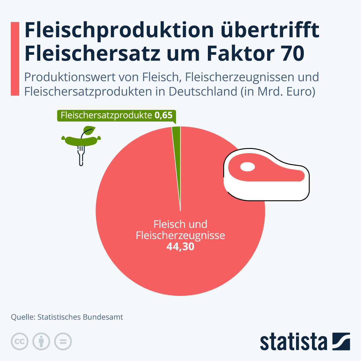 Die Grafik bildet den Produktionswert von Fleisch, Fleischerzeugnissen und Fleischersatzprodukten in Deutschland ab.