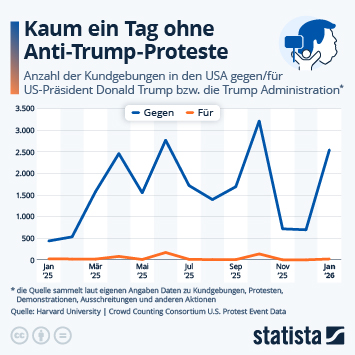 Donald Trump fehlt es laut einer Umfrage des Pew Research Centers an wichtigen Eigenschaften, die ein US-Präsident haben sollte. So sind nur 21 Prozent der über 8.000 befragten, erwachsenen US-Amerikaner:innen sehr beziehungsweise äußerst zuversichtlich, dass Trump sein Amt ethisch ausübt, 60 Prozent sind gegenteiliger Meinung. Ähnlich schlecht schneidet der Amtsinhaber in den Rubriken "hat Respekt vor demokratischen Werten" und "wählt gute Berater:innen aus" ab. Aber auch ansonsten erweckt der US-Präsident bei den US-Bürger:innen eher wenig Zuversicht, wie der Blick auf die Statista-Grafik zeigt.